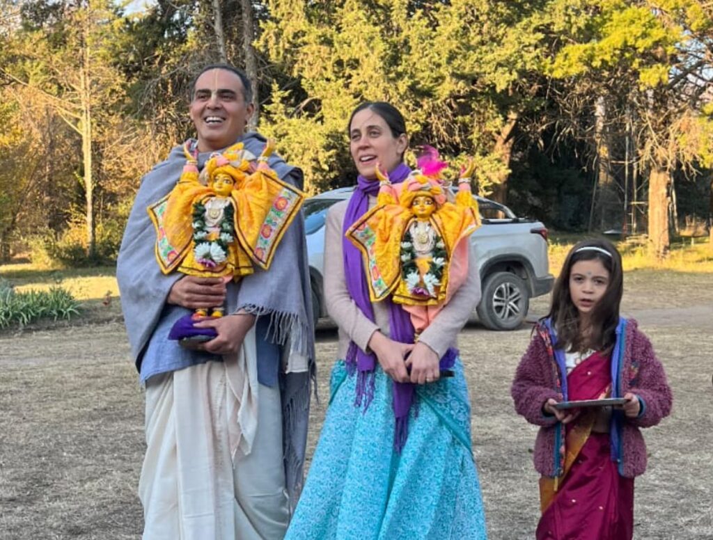 Devakinandana prabhu su esposa Mitravinda y su hijita Danaji sosteniendo todo el proyecto por años